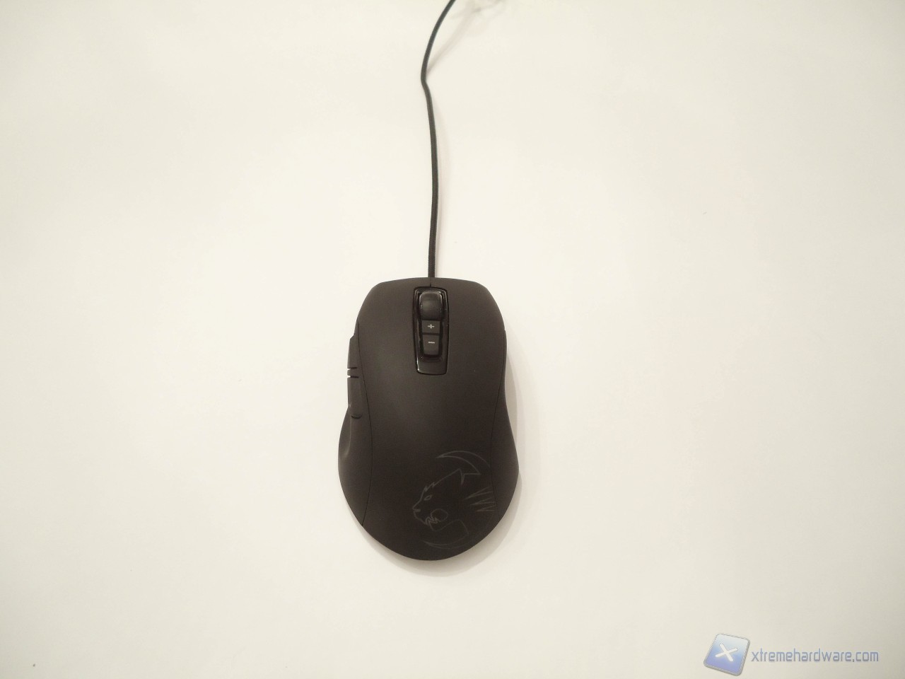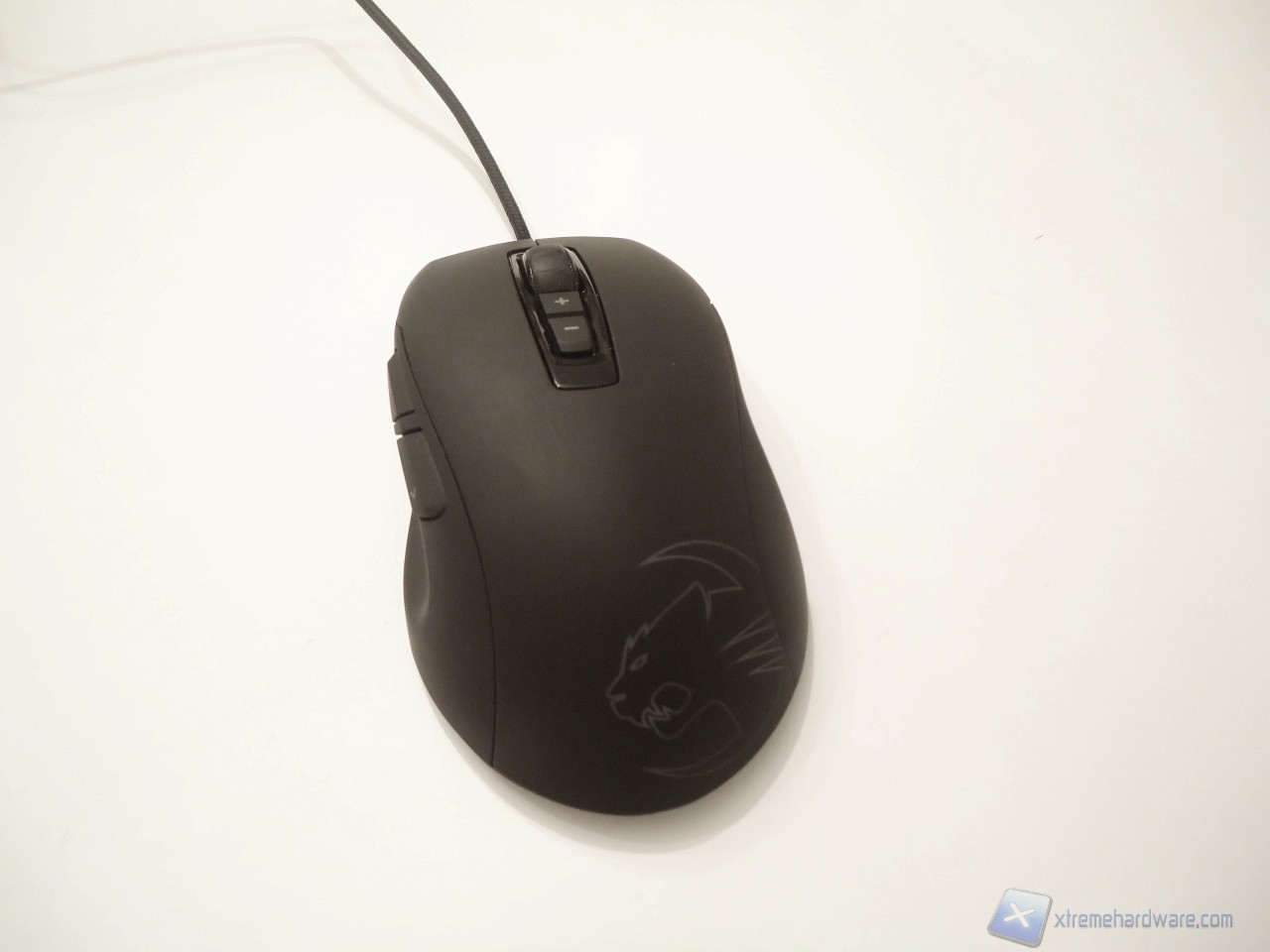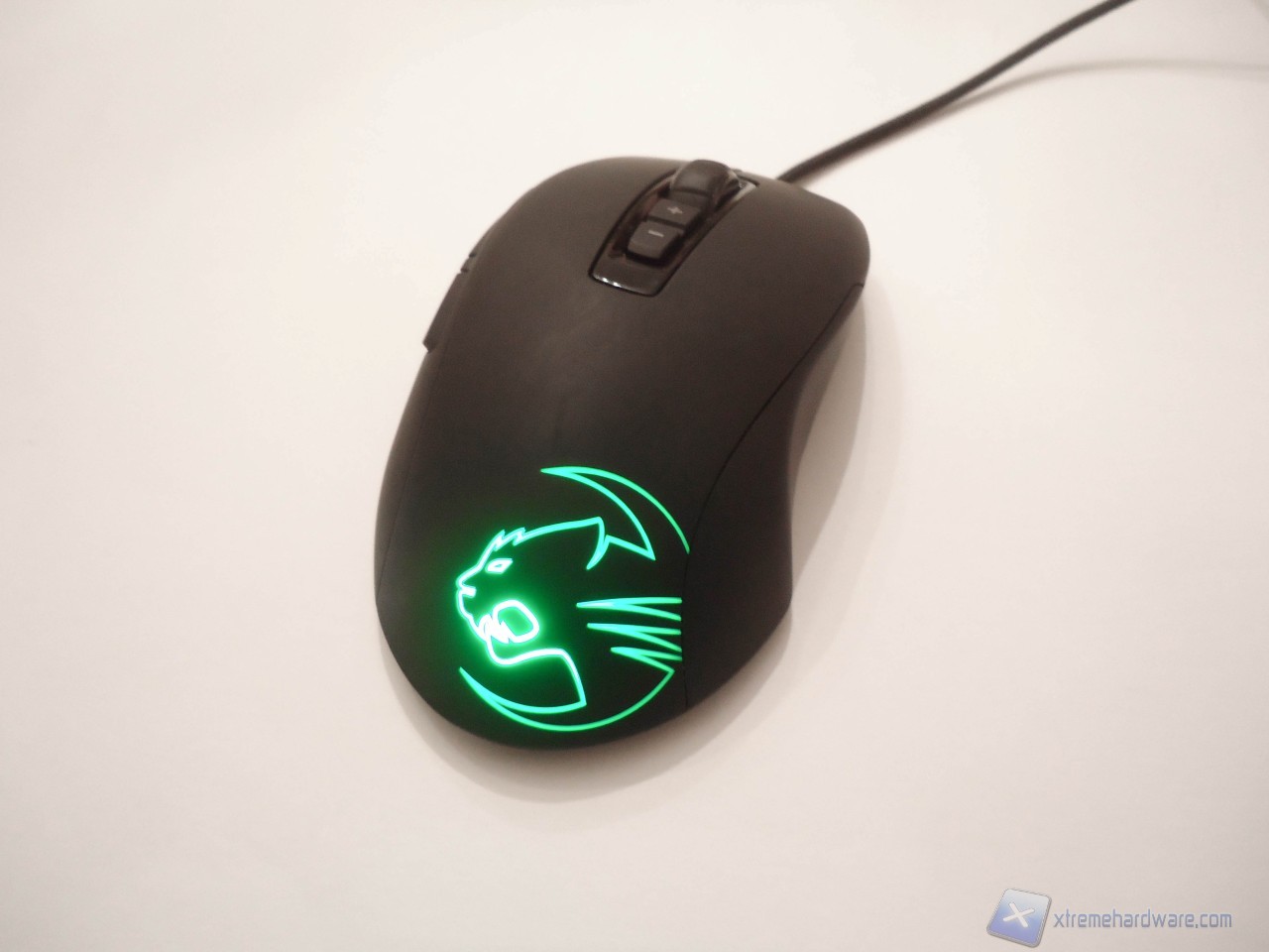 Verso la parte posteriore del mouse troviamo il logo Roccat capace di illuminarsi con ben 16.8 milioni di colori gestibili tramite software.
